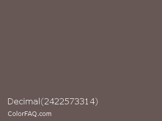 Decimal 2422573314 Color is a normal red color and the nearest color is Zambezi #685558. Hex code #675856 and RGB value is rgb(103,88,86). In RGB color space, this color is composed of 40% red, 35% green, 34% blue, In CMYK color space, this color is composed of 0% cyan, 15% magenta, 17% yellow , 60% black , In HSL color space, this color has a hue angle of 7° , 9% saturation and 37% lightness.