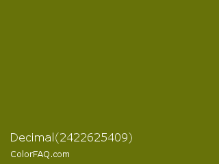Decimal 2422625409 Color is a dark yellow color and the nearest color is Olivetone #716e10. Hex code #677209 and RGB value is rgb(103,114,9). In RGB color space, this color is composed of 40% red, 45% green, 4% blue, In CMYK color space, this color is composed of 10% cyan, 0% magenta, 92% yellow , 55% black , In HSL color space, this color has a hue angle of 66° , 85% saturation and 24% lightness.