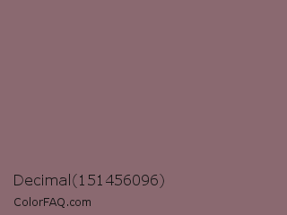 Decimal 151456096 Color is a normal red color and the nearest color is Opium #8e6f70. Hex code #8a6970 and RGB value is rgb(138,105,112). In RGB color space, this color is composed of 54% red, 41% green, 44% blue, In CMYK color space, this color is composed of 0% cyan, 24% magenta, 19% yellow , 46% black , In HSL color space, this color has a hue angle of 347° , 14% saturation and 48% lightness.