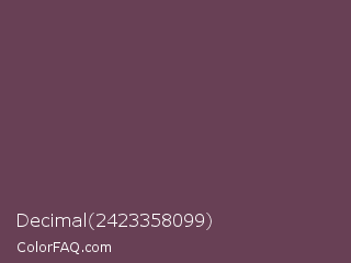 Decimal 2423358099 Color is a normal rose color and the nearest color is Eggplant #614051. Hex code #684055 and RGB value is rgb(104,64,85). In RGB color space, this color is composed of 41% red, 25% green, 33% blue, In CMYK color space, this color is composed of 0% cyan, 38% magenta, 18% yellow , 59% black , In HSL color space, this color has a hue angle of 329° , 24% saturation and 33% lightness.