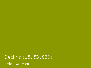 Decimal 151531830 Color is a dark yellow color and the nearest color is Olive #808000. Hex code #8a9900 and RGB value is rgb(138,153,0). In RGB color space, this color is composed of 54% red, 60% green, 0% blue, In CMYK color space, this color is composed of 10% cyan, 0% magenta, 100% yellow , 40% black , In HSL color space, this color has a hue angle of 66° , 100% saturation and 30% lightness.