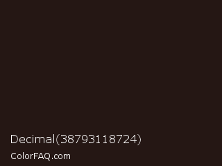 Decimal 38793118724 Color is a very dark red color and the nearest color is Gondola #261414. Hex code #251714 and RGB value is rgb(37,23,20). In RGB color space, this color is composed of 15% red, 9% green, 8% blue, In CMYK color space, this color is composed of 0% cyan, 38% magenta, 46% yellow , 85% black , In HSL color space, this color has a hue angle of 11° , 30% saturation and 11% lightness.