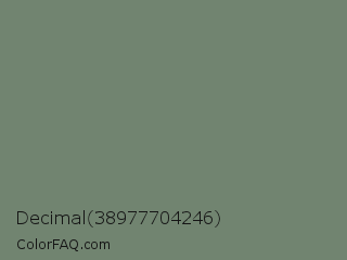 Decimal 38977704246 Color is a normal green color and the nearest color is Smoke #738276. Hex code #718470 and RGB value is rgb(113,132,112). In RGB color space, this color is composed of 44% red, 52% green, 44% blue, In CMYK color space, this color is composed of 14% cyan, 0% magenta, 15% yellow , 48% black , In HSL color space, this color has a hue angle of 117° , 8% saturation and 48% lightness.