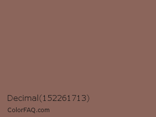 Decimal 152261713 Color is a normal red color and the nearest color is Rose Taupe #905d5d. Hex code #8b655b and RGB value is rgb(139,101,91). In RGB color space, this color is composed of 55% red, 40% green, 36% blue, In CMYK color space, this color is composed of 0% cyan, 27% magenta, 35% yellow , 45% black , In HSL color space, this color has a hue angle of 13° , 21% saturation and 45% lightness.