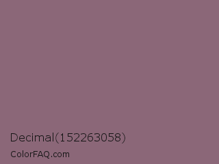 Decimal 152263058 Color is a normal rose color and the nearest color is Opium #8e6f70. Hex code #8b6778 and RGB value is rgb(139,103,120). In RGB color space, this color is composed of 55% red, 40% green, 47% blue, In CMYK color space, this color is composed of 0% cyan, 26% magenta, 14% yellow , 45% black , In HSL color space, this color has a hue angle of 332° , 15% saturation and 47% lightness.