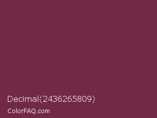 Decimal 2436265809 Color is a dark rose color and the nearest color is Tawny Port #692545. Hex code #722947 and RGB value is rgb(114,41,71). In RGB color space, this color is composed of 45% red, 16% green, 28% blue, In CMYK color space, this color is composed of 0% cyan, 64% magenta, 38% yellow , 55% black , In HSL color space, this color has a hue angle of 335° , 47% saturation and 30% lightness.