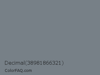 Decimal 38981866321 Color is a normal blue color and the nearest color is Rolling Stone #747d83. Hex code #778087 and RGB value is rgb(119,128,135). In RGB color space, this color is composed of 47% red, 50% green, 53% blue, In CMYK color space, this color is composed of 12% cyan, 5% magenta, 0% yellow , 47% black , In HSL color space, this color has a hue angle of 206° , 6% saturation and 50% lightness.