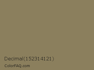 Decimal 152314121 Color is a normal orange color and the nearest color is Clay Creek #8a8360. Hex code #8b7f5d and RGB value is rgb(139,127,93). In RGB color space, this color is composed of 55% red, 50% green, 36% blue, In CMYK color space, this color is composed of 0% cyan, 9% magenta, 33% yellow , 45% black , In HSL color space, this color has a hue angle of 44° , 20% saturation and 45% lightness.