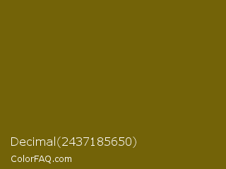 Decimal 2437185650 Color is a dark yellow color and the nearest color is Spicy Mustard #74640d. Hex code #736308 and RGB value is rgb(115,99,8). In RGB color space, this color is composed of 45% red, 39% green, 3% blue, In CMYK color space, this color is composed of 0% cyan, 14% magenta, 93% yellow , 55% black , In HSL color space, this color has a hue angle of 51° , 87% saturation and 24% lightness.
