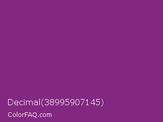 Decimal 38995907145 Color is a normal magenta color and the nearest color is Razzmic Berry Crayola #843179. Hex code #832881 and RGB value is rgb(131,40,129). In RGB color space, this color is composed of 51% red, 16% green, 51% blue, In CMYK color space, this color is composed of 0% cyan, 69% magenta, 2% yellow , 49% black , In HSL color space, this color has a hue angle of 301° , 53% saturation and 34% lightness.