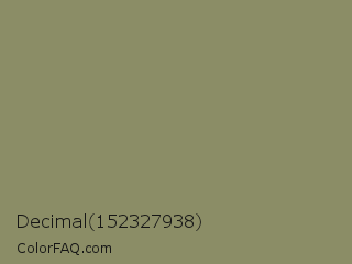 Decimal 152327938 Color is a normal yellow color and the nearest color is Avocado Pulp #888d65. Hex code #8b8d66 and RGB value is rgb(139,141,102). In RGB color space, this color is composed of 55% red, 55% green, 40% blue, In CMYK color space, this color is composed of 1% cyan, 0% magenta, 28% yellow , 45% black , In HSL color space, this color has a hue angle of 63° , 16% saturation and 48% lightness.