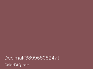 Decimal 38996808247 Color is a normal red color and the nearest color is Spicy Mix #8b5f4d. Hex code #845155 and RGB value is rgb(132,81,85). In RGB color space, this color is composed of 52% red, 32% green, 33% blue, In CMYK color space, this color is composed of 0% cyan, 39% magenta, 36% yellow , 48% black , In HSL color space, this color has a hue angle of 355° , 24% saturation and 42% lightness.