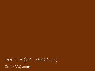 Decimal 2437940553 Color is a dark orange color and the nearest color is Red Beech #7b3801. Hex code #743005 and RGB value is rgb(116,48,5). In RGB color space, this color is composed of 45% red, 19% green, 2% blue, In CMYK color space, this color is composed of 0% cyan, 59% magenta, 96% yellow , 55% black , In HSL color space, this color has a hue angle of 23° , 92% saturation and 24% lightness.