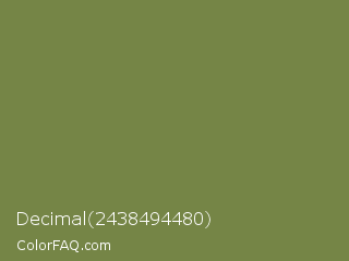 Decimal 2438494480 Color is a normal lime color and the nearest color is Palm Leaf #6f9940. Hex code #758546 and RGB value is rgb(117,133,70). In RGB color space, this color is composed of 46% red, 52% green, 27% blue, In CMYK color space, this color is composed of 12% cyan, 0% magenta, 47% yellow , 48% black , In HSL color space, this color has a hue angle of 75° , 31% saturation and 40% lightness.