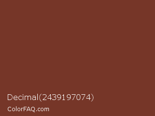 Decimal 2439197074 Color is a normal red color and the nearest color is Red Robin #80341f. Hex code #763628 and RGB value is rgb(118,54,40). In RGB color space, this color is composed of 46% red, 21% green, 16% blue, In CMYK color space, this color is composed of 0% cyan, 54% magenta, 66% yellow , 54% black , In HSL color space, this color has a hue angle of 11° , 49% saturation and 31% lightness.