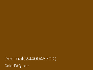 Decimal 2440048709 Color is a dark orange color and the nearest color is Antique Bronze #704a07. Hex code #774705 and RGB value is rgb(119,71,5). In RGB color space, this color is composed of 47% red, 28% green, 2% blue, In CMYK color space, this color is composed of 0% cyan, 40% magenta, 96% yellow , 53% black , In HSL color space, this color has a hue angle of 35° , 92% saturation and 24% lightness.