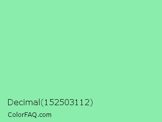 Decimal 152503112 Color is a light green color and the nearest color is Teal Deer #99e6b3. Hex code #8bedac and RGB value is rgb(139,237,172). In RGB color space, this color is composed of 55% red, 93% green, 67% blue, In CMYK color space, this color is composed of 41% cyan, 0% magenta, 27% yellow , 7% black , In HSL color space, this color has a hue angle of 140° , 73% saturation and 74% lightness.