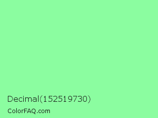 Decimal 152519730 Color is a light green color and the nearest color is Mint Green #98ff98. Hex code #8bfda0 and RGB value is rgb(139,253,160). In RGB color space, this color is composed of 55% red, 99% green, 63% blue, In CMYK color space, this color is composed of 45% cyan, 0% magenta, 37% yellow , 1% black , In HSL color space, this color has a hue angle of 131° , 97% saturation and 77% lightness.