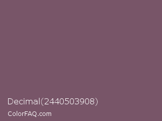 Decimal 2440503908 Color is a normal magenta color and the nearest color is Deep Taupe #7e5e60. Hex code #785568 and RGB value is rgb(120,85,104). In RGB color space, this color is composed of 47% red, 33% green, 41% blue, In CMYK color space, this color is composed of 0% cyan, 29% magenta, 13% yellow , 53% black , In HSL color space, this color has a hue angle of 327° , 17% saturation and 40% lightness.