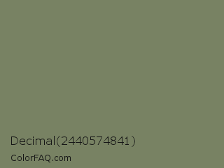 Decimal 2440574841 Color is a normal lime color and the nearest color is Flax Smoke #7b8265. Hex code #788263 and RGB value is rgb(120,130,99). In RGB color space, this color is composed of 47% red, 51% green, 39% blue, In CMYK color space, this color is composed of 8% cyan, 0% magenta, 24% yellow , 49% black , In HSL color space, this color has a hue angle of 79° , 14% saturation and 45% lightness.