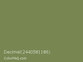 Decimal 2440581186 Color is a normal lime color and the nearest color is Flax Smoke #7b8265. Hex code #788752 and RGB value is rgb(120,135,82). In RGB color space, this color is composed of 47% red, 53% green, 32% blue, In CMYK color space, this color is composed of 11% cyan, 0% magenta, 39% yellow , 47% black , In HSL color space, this color has a hue angle of 77° , 24% saturation and 43% lightness.