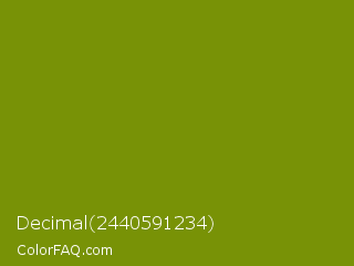 Decimal 2440591234 Color is a dark lime color and the nearest color is Limeade #6f9d02. Hex code #789206 and RGB value is rgb(120,146,6). In RGB color space, this color is composed of 47% red, 57% green, 2% blue, In CMYK color space, this color is composed of 18% cyan, 0% magenta, 96% yellow , 43% black , In HSL color space, this color has a hue angle of 71° , 92% saturation and 30% lightness.