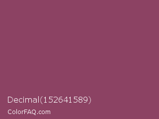 Decimal 152641589 Color is a normal rose color and the nearest color is Cannon Pink #894367. Hex code #8c4263 and RGB value is rgb(140,66,99). In RGB color space, this color is composed of 55% red, 26% green, 39% blue, In CMYK color space, this color is composed of 0% cyan, 53% magenta, 29% yellow , 45% black , In HSL color space, this color has a hue angle of 333° , 36% saturation and 40% lightness.