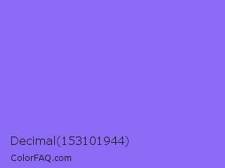 Decimal 153101944 Color is a light indigo color and the nearest color is Medium Slate Blue #7b68ee. Hex code #8c6bf6 and RGB value is rgb(140,107,246). In RGB color space, this color is composed of 55% red, 42% green, 96% blue, In CMYK color space, this color is composed of 43% cyan, 57% magenta, 0% yellow , 4% black , In HSL color space, this color has a hue angle of 254° , 89% saturation and 69% lightness.