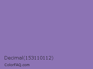 Decimal 153110112 Color is a normal violet color and the nearest color is Middle Blue Purple #8b72be. Hex code #8c73b4 and RGB value is rgb(140,115,180). In RGB color space, this color is composed of 55% red, 45% green, 71% blue, In CMYK color space, this color is composed of 22% cyan, 36% magenta, 0% yellow , 29% black , In HSL color space, this color has a hue angle of 263° , 30% saturation and 58% lightness.