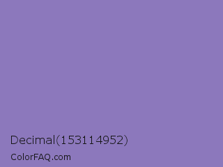 Decimal 153114952 Color is a normal indigo color and the nearest color is Middle Blue Purple #8b72be. Hex code #8c78bc and RGB value is rgb(140,120,188). In RGB color space, this color is composed of 55% red, 47% green, 74% blue, In CMYK color space, this color is composed of 26% cyan, 36% magenta, 0% yellow , 26% black , In HSL color space, this color has a hue angle of 258° , 34% saturation and 60% lightness.