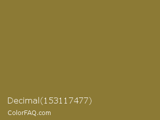 Decimal 153117477 Color is a normal yellow color and the nearest color is Old Moss Green #867e36. Hex code #8c7a35 and RGB value is rgb(140,122,53). In RGB color space, this color is composed of 55% red, 48% green, 21% blue, In CMYK color space, this color is composed of 0% cyan, 13% magenta, 62% yellow , 45% black , In HSL color space, this color has a hue angle of 48° , 45% saturation and 38% lightness.