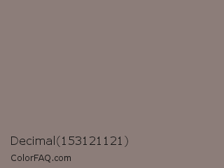 Decimal 153121121 Color is a normal red color and the nearest color is Hurricane #877c7b. Hex code #8c7d79 and RGB value is rgb(140,125,121). In RGB color space, this color is composed of 55% red, 49% green, 47% blue, In CMYK color space, this color is composed of 0% cyan, 11% magenta, 14% yellow , 45% black , In HSL color space, this color has a hue angle of 13° , 8% saturation and 51% lightness.