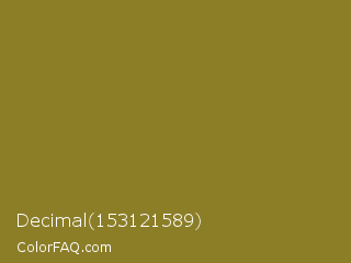 Decimal 153121589 Color is a normal yellow color and the nearest color is Old Moss Green #867e36. Hex code #8c7e27 and RGB value is rgb(140,126,39). In RGB color space, this color is composed of 55% red, 49% green, 15% blue, In CMYK color space, this color is composed of 0% cyan, 10% magenta, 72% yellow , 45% black , In HSL color space, this color has a hue angle of 52° , 56% saturation and 35% lightness.
