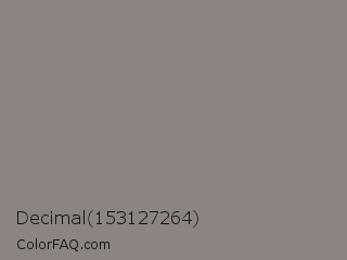 Decimal 153127264 Color is a normal orange color and the nearest color is Natural Gray #8b8680. Hex code #8c8480 and RGB value is rgb(140,132,128). In RGB color space, this color is composed of 55% red, 52% green, 50% blue, In CMYK color space, this color is composed of 0% cyan, 6% magenta, 9% yellow , 45% black , In HSL color space, this color has a hue angle of 20° , 5% saturation and 53% lightness.