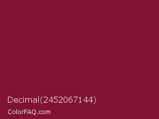Decimal 2452067144 Color is a dark rose color and the nearest color is Claret #7f1734. Hex code #801234 and RGB value is rgb(128,18,52). In RGB color space, this color is composed of 50% red, 7% green, 20% blue, In CMYK color space, this color is composed of 0% cyan, 86% magenta, 59% yellow , 50% black , In HSL color space, this color has a hue angle of 341° , 75% saturation and 29% lightness.