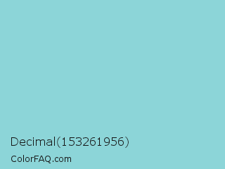 Decimal 153261956 Color is a light cyan color and the nearest color is Middle Blue Green #8dd9cc. Hex code #8cd5d8 and RGB value is rgb(140,213,216). In RGB color space, this color is composed of 55% red, 84% green, 85% blue, In CMYK color space, this color is composed of 35% cyan, 1% magenta, 0% yellow , 15% black , In HSL color space, this color has a hue angle of 182° , 49% saturation and 70% lightness.