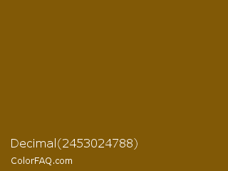 Decimal 2453024788 Color is a dark orange color and the nearest color is Rusty Nail #86560a. Hex code #815906 and RGB value is rgb(129,89,6). In RGB color space, this color is composed of 51% red, 35% green, 2% blue, In CMYK color space, this color is composed of 0% cyan, 31% magenta, 95% yellow , 49% black , In HSL color space, this color has a hue angle of 40° , 91% saturation and 26% lightness.