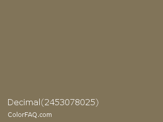 Decimal 2453078025 Color is a normal orange color and the nearest color is Shadow Crayola #837050. Hex code #817459 and RGB value is rgb(129,116,89). In RGB color space, this color is composed of 51% red, 45% green, 35% blue, In CMYK color space, this color is composed of 0% cyan, 10% magenta, 31% yellow , 49% black , In HSL color space, this color has a hue angle of 41° , 18% saturation and 43% lightness.