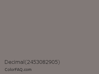 Decimal 2453082905 Color is a normal red color and the nearest color is Friar Gray #807e79. Hex code #817977 and RGB value is rgb(129,121,119). In RGB color space, this color is composed of 51% red, 47% green, 47% blue, In CMYK color space, this color is composed of 0% cyan, 6% magenta, 8% yellow , 49% black , In HSL color space, this color has a hue angle of 12° , 4% saturation and 49% lightness.