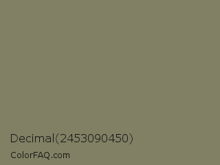 Decimal 2453090450 Color is a normal yellow color and the nearest color is Flax Smoke #7b8265. Hex code #818064 and RGB value is rgb(129,128,100). In RGB color space, this color is composed of 51% red, 50% green, 39% blue, In CMYK color space, this color is composed of 0% cyan, 1% magenta, 22% yellow , 49% black , In HSL color space, this color has a hue angle of 58° , 13% saturation and 45% lightness.