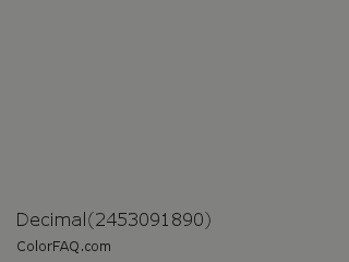 Decimal 2453091890 Color is a normal green color and the nearest color is Gray #808080. Hex code #818280 and RGB value is rgb(129,130,128). In RGB color space, this color is composed of 51% red, 51% green, 50% blue, In CMYK color space, this color is composed of 1% cyan, 0% magenta, 2% yellow , 49% black , In HSL color space, this color has a hue angle of 90° , 1% saturation and 51% lightness.