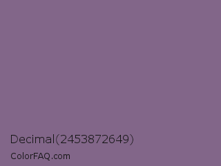 Decimal 2453872649 Color is a normal purple color and the nearest color is Chinese Violet #856088. Hex code #826689 and RGB value is rgb(130,102,137). In RGB color space, this color is composed of 51% red, 40% green, 54% blue, In CMYK color space, this color is composed of 5% cyan, 26% magenta, 0% yellow , 46% black , In HSL color space, this color has a hue angle of 288° , 15% saturation and 47% lightness.
