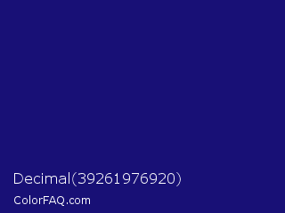 Decimal 39261976920 Color is a dark indigo color and the nearest color is Deep Koamaru #1b127b. Hex code #181076 and RGB value is rgb(24,16,118). In RGB color space, this color is composed of 9% red, 6% green, 46% blue, In CMYK color space, this color is composed of 80% cyan, 86% magenta, 0% yellow , 54% black , In HSL color space, this color has a hue angle of 245° , 76% saturation and 26% lightness.