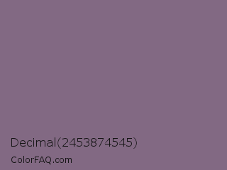 Decimal 2453874545 Color is a normal magenta color and the nearest color is Chinese Violet #856088. Hex code #826983 and RGB value is rgb(130,105,131). In RGB color space, this color is composed of 51% red, 41% green, 51% blue, In CMYK color space, this color is composed of 1% cyan, 20% magenta, 0% yellow , 49% black , In HSL color space, this color has a hue angle of 298° , 11% saturation and 46% lightness.