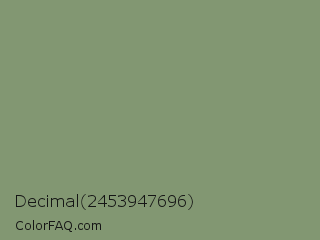 Decimal 2453947696 Color is a normal green color and the nearest color is Battleship Gray #828f72. Hex code #829772 and RGB value is rgb(130,151,114). In RGB color space, this color is composed of 51% red, 59% green, 45% blue, In CMYK color space, this color is composed of 14% cyan, 0% magenta, 25% yellow , 41% black , In HSL color space, this color has a hue angle of 94° , 15% saturation and 52% lightness.
