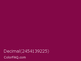 Decimal 2454139225 Color is a dark rose color and the nearest color is Rose Bud Cherry #800b47. Hex code #830747 and RGB value is rgb(131,7,71). In RGB color space, this color is composed of 51% red, 3% green, 28% blue, In CMYK color space, this color is composed of 0% cyan, 95% magenta, 46% yellow , 49% black , In HSL color space, this color has a hue angle of 329° , 90% saturation and 27% lightness.