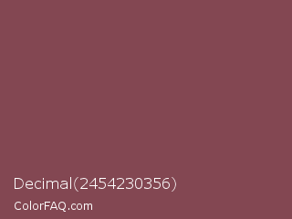 Decimal 2454230356 Color is a normal red color and the nearest color is Deep Ruby #843f5b. Hex code #834752 and RGB value is rgb(131,71,82). In RGB color space, this color is composed of 51% red, 28% green, 32% blue, In CMYK color space, this color is composed of 0% cyan, 46% magenta, 37% yellow , 49% black , In HSL color space, this color has a hue angle of 349° , 30% saturation and 40% lightness.