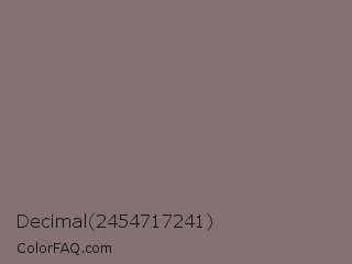Decimal 2454717241 Color is a normal red color and the nearest color is Spicy Pink #816e71. Hex code #837173 and RGB value is rgb(131,113,115). In RGB color space, this color is composed of 51% red, 44% green, 45% blue, In CMYK color space, this color is composed of 0% cyan, 14% magenta, 12% yellow , 49% black , In HSL color space, this color has a hue angle of 353° , 7% saturation and 48% lightness.