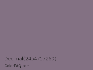 Decimal 2454717269 Color is a normal magenta color and the nearest color is Mobster #7f7589. Hex code #837183 and RGB value is rgb(131,113,131). In RGB color space, this color is composed of 51% red, 44% green, 51% blue, In CMYK color space, this color is composed of 0% cyan, 14% magenta, 0% yellow , 49% black , In HSL color space, this color has a hue angle of 300° , 7% saturation and 48% lightness.