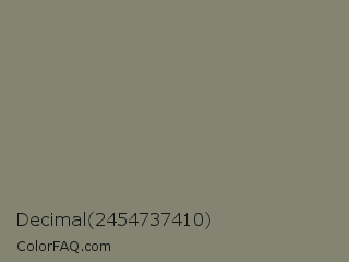 Decimal 2454737410 Color is a normal yellow color and the nearest color is Bandicoot #858470. Hex code #838472 and RGB value is rgb(131,132,114). In RGB color space, this color is composed of 51% red, 52% green, 45% blue, In CMYK color space, this color is composed of 1% cyan, 0% magenta, 14% yellow , 48% black , In HSL color space, this color has a hue angle of 63° , 7% saturation and 48% lightness.